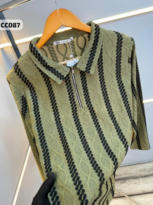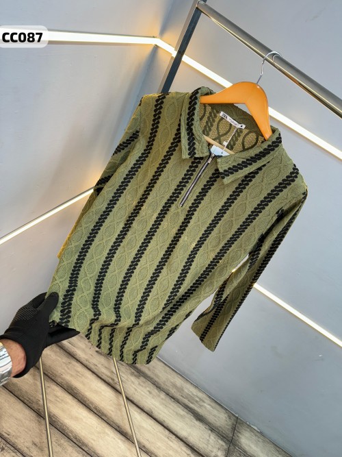 Mens premium imported Jacquard knit 280gsm Zipper full sleeves polos as per original article